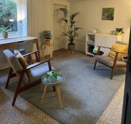 Our therapy rooms are designed and furnished for therapists by therapists. This means that we have thought of everything. You’ll have excellent wi-fi. All the rooms have flexible seating for individuals, couples and groups. In addition each room has its own intercom system. There are six consulting rooms to rent, for talking therapies as well as one room designed for body-orientated therapists. The practice also boasts a bright, spacious group room for up to twenty people, overlooking a little courtyard garden.